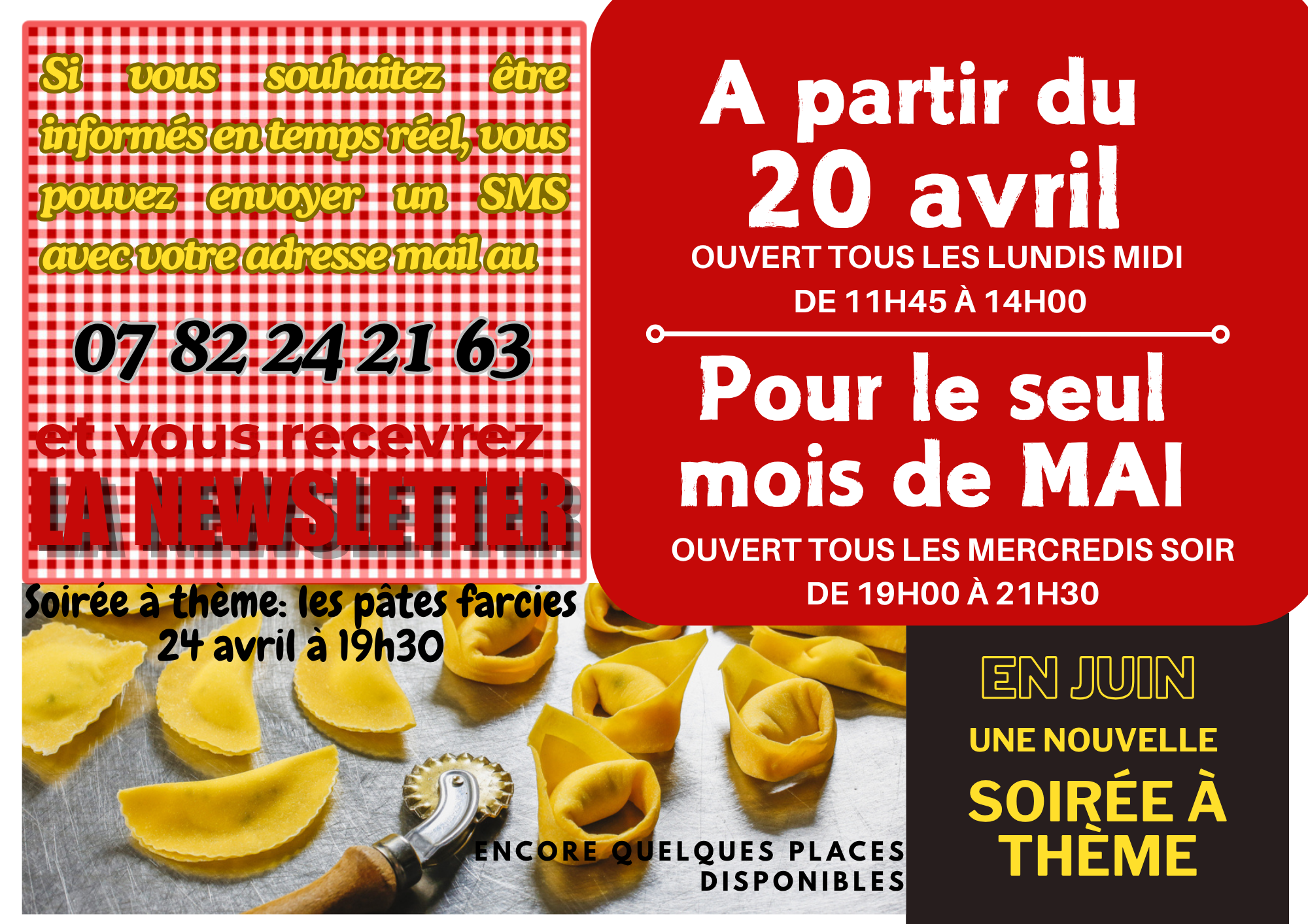 Avec nos plats phares, toujours présents dans le menu, chaque semaine, nous en proposons plusieurs, en nombre limité, pour assurer une préparation absolument maison.