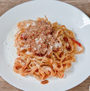 Une entré pleine de goût composée de trois fromages italiens (pecorino, parmesan et mozzarella cerises ou autre fromage frais) et d'antipasti mixtes (artichaux, aubergines, poivrons et tomates sechés). 6 petits pains maison (les tigelle) accompagnent ce plat.